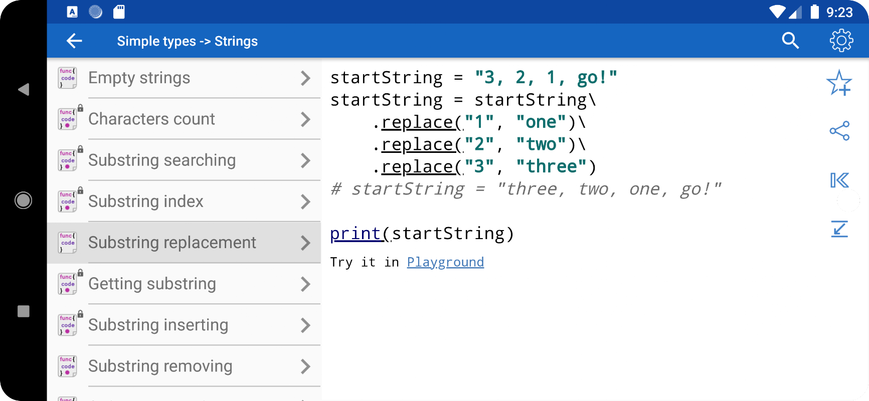 • Alle voorbeelden in de applicatie zijn offline beschikbaar. De applicatie kan worden gebruikt als er geen internetverbinding beschikbaar is.