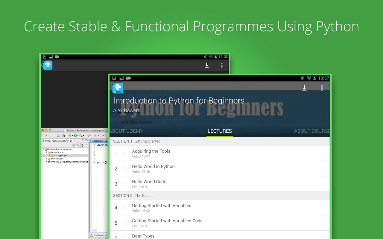 Install the "Python Tutorial for Beginners" app now and join over 4 million students who are already learning on Udemy