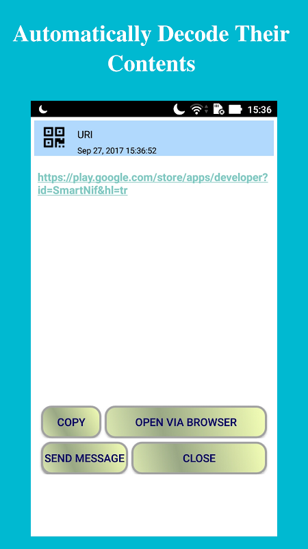 De QB-scanner is ontworpen om barcodes en QR-codes te lezen. Om een QR code of barcode te scannen, richt de camera op de code, dat is het! Er is geen noodzaak om een knop te drukken. De app wordt automatisch een code uw camera op gericht at.The scanner kan worden gebruikt om meerdere barcode formaten en QR-codes te scannen te herkennen, hun inhoud automatisch decoderen. U kunt de geschiedenis van gescande codes lijst en deel ze als een csv-bestand op de cloud. Scan barcodes op producten of Data Matrix en QR Codes met URL's, contactgegevens, e-mailadressen, tekst, SMS, telefoonnummers, GEO Point, Wi-Fi Connection en agenda.