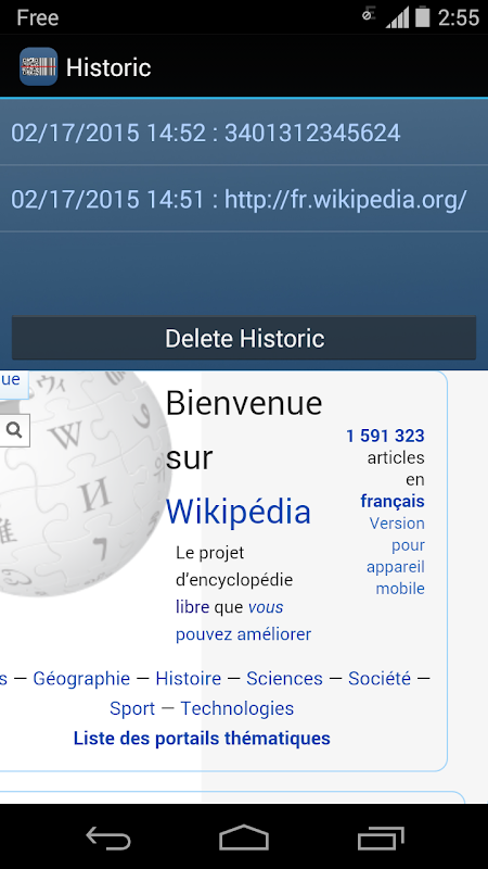 Just launch the application and then you can read any QR code or barcode. The application also provides the ability to generate a QR code from a link or text and share it to all your contacts. Finally a historic allow you to keep all scanned codes.