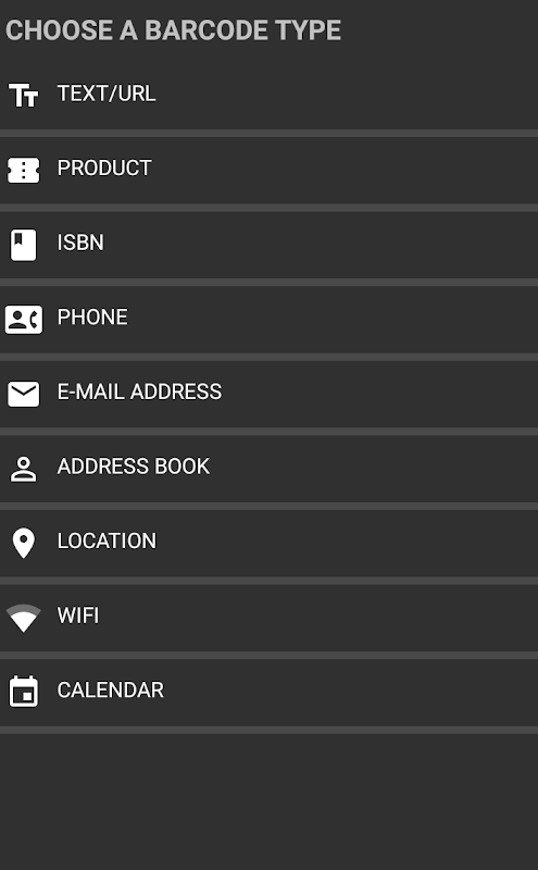 ✔ QR Code, Barcode Scanner & Generator kunnen worden gebruikt om verschillende soorten barcodes te genereren: TEKST, URL, ISBN, PRODUCT, CONTACTINFO, LOCATIE, E-MAIL, WIFI, KALENDER en TEL. De gegenereerde barcodes worden automatisch opgeslagen en kunnen worden gedeeld met andere apps.