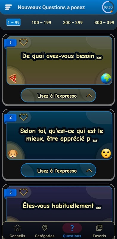 * Nous avons ajouter plus de 100 questions intime à poser à son copain ou à son crush.