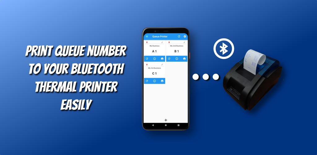 Met de Bluetooth-printer-app Wachtrijnummer kunt u eenvoudig en betrouwbaar het wachtrijnummer afdrukken, het koppelen met uw thermische Bluetooth-printer of Bluetooth-labelprinter en u kunt eenvoudig afdrukken.