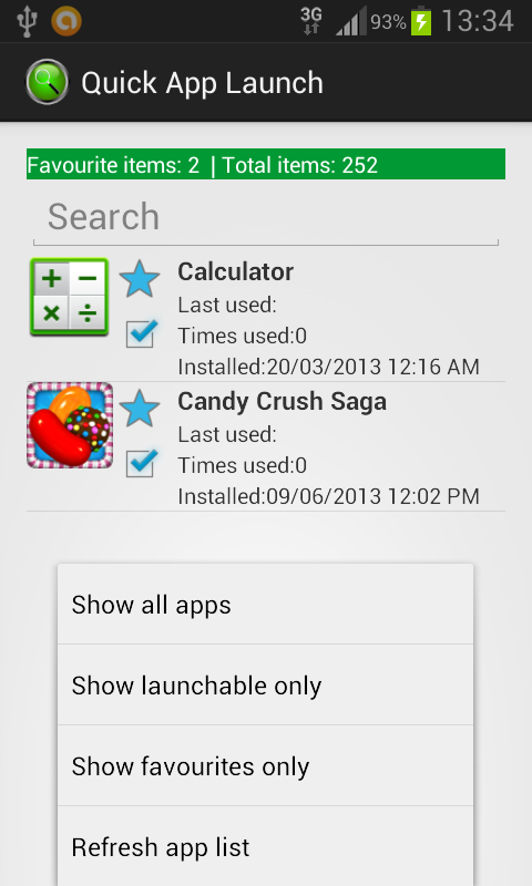 - Laten u zien hoe vaak je een bepaalde app hebben gebruikt (indien gelanceerd via "Quick App Launch")