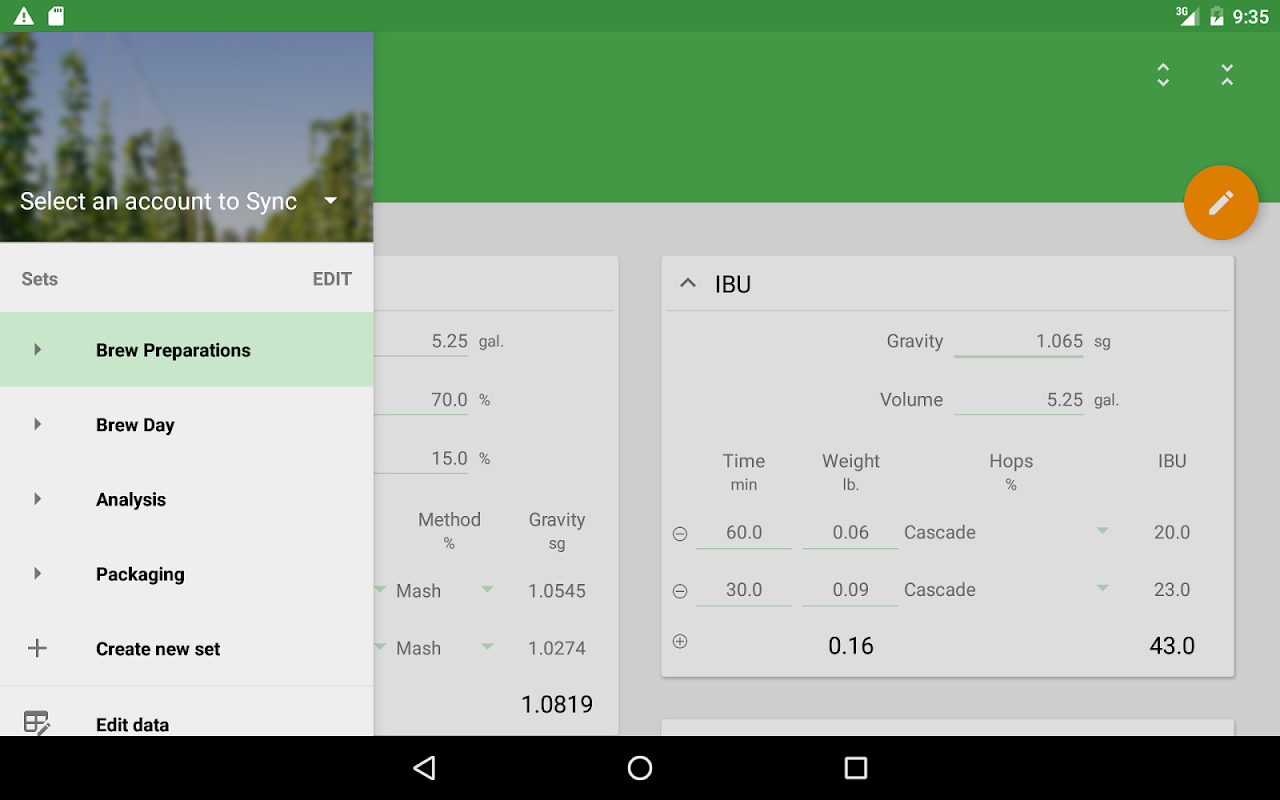 Cloud backup and sync across devices - Select a Google account and all your calculation sets will be saved to the cloud (using your Google Drive). Start building a hop schedule on one device, finish it on another.