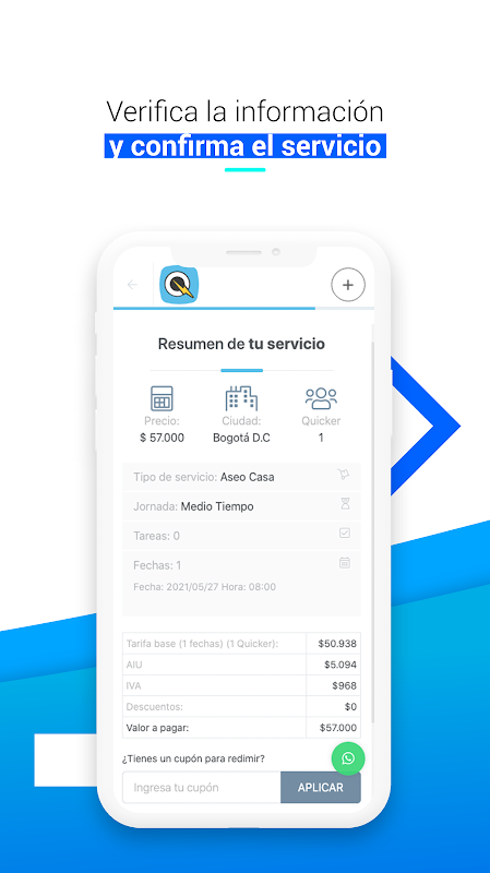 Met Quick Clean hebben we schoonmaak-, onderhouds- en reparatiediensten voor uw huis of kantoor. Via ons platform kunt u Quickers aanvragen die gespecialiseerd zijn in het schoonmaken🧹 en het organiseren van uw wereld 🌍. Wil je weten hoe het werkt? Het is heel gemakkelijk, je hoeft alleen maar: