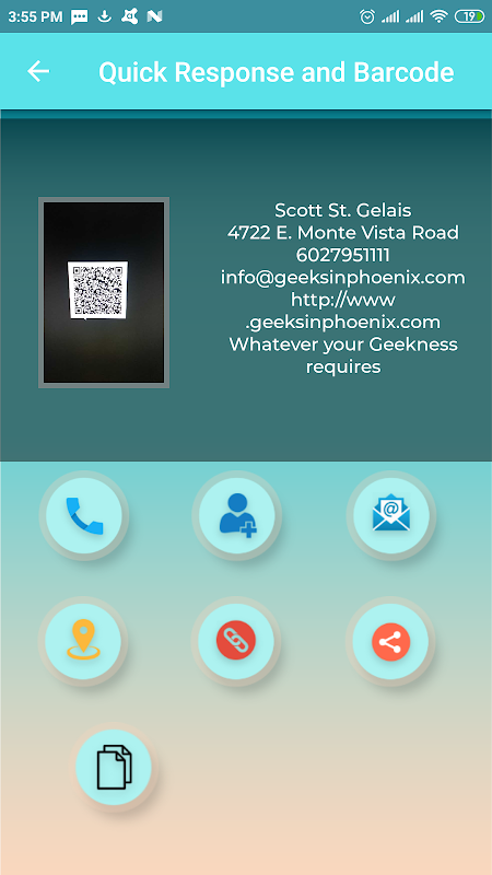 Met spannende afzonderlijke functies van QR-codegenerator en Barcodegenerator kunt u uw eigen codes genereren en deze delen met uw vrienden. U kunt uw QR ook opslaan in de lokale telefoongids.