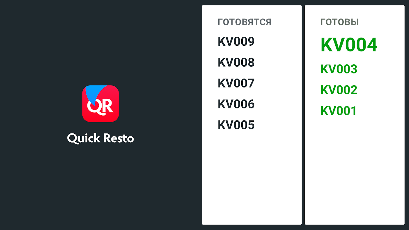 Quick Resto Line - een scherm met een elektronische wachtrij van bestellingen voor pizzeria's, fastfoodrestaurants en afhaalrestaurants.