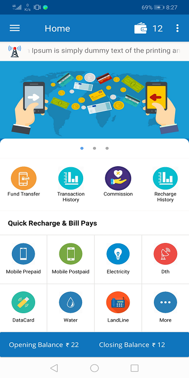 Its application provide rechege for your dth, mobile and electricity bils and etc...