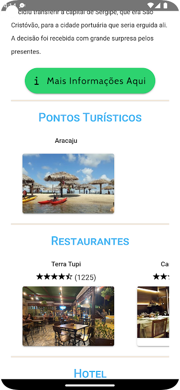 We hebben ook opties voor restaurants en hotels in de gekozen stad. De bediening is hetzelfde als het Restaurant, door te klikken hebben we toegang tot recensies, foto's, opmerkingen en meer details buiten de App.