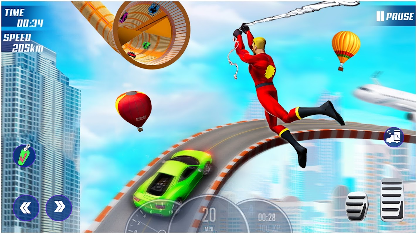 Download Racer Superhero Car Stunt Game en ervaar waanzinnige autorijden op onmogelijke stunttracks in deze GT-superheld-autoracegames.