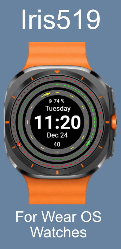 Iris519 wijzerplaat voor Wear OS is een eenvoudige en leuke wijzerplaat. Door uren, minuten en seconden op te nemen in een racebaanlay-out wordt de huidige tijd weergegeven. Dag en datum worden samen met batterij-informatie weergegeven.