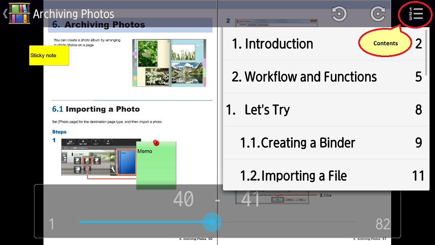 - You can import binder data into your mobile device while keeping the sticky notes and dividers.