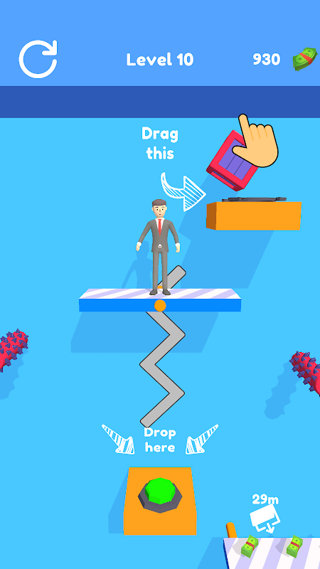 Avoid obstacles to stay on track. Try to keep your balance on the platforms, it will help you get to the end.