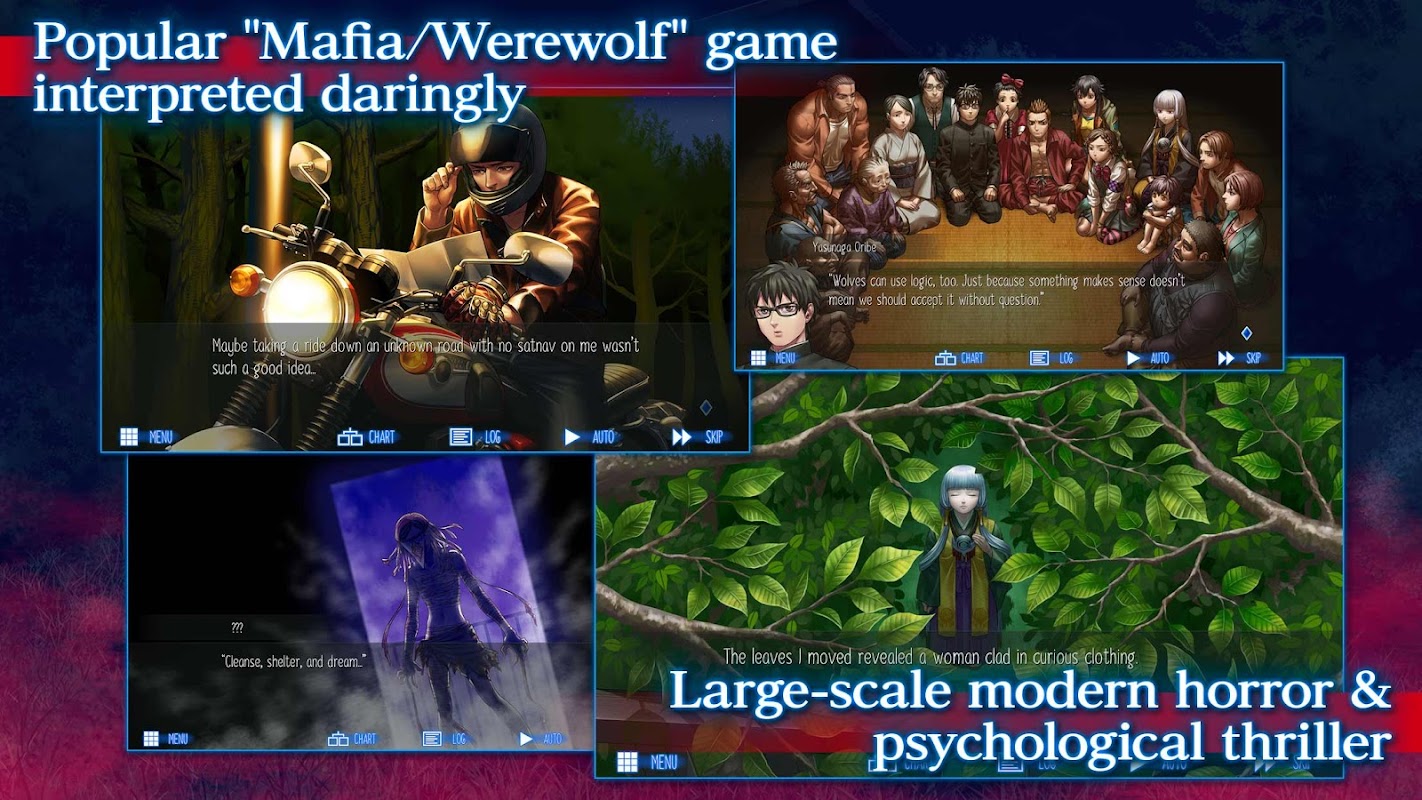 Een psychologische horror-visuele roman, die de "maffia / weerwolf" moedig interpreteert.