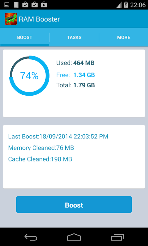Turbo Memory Booster uses a sophisticated technology to optimize the performance of your device. For maximum results you should use this memory booster at least once a day.