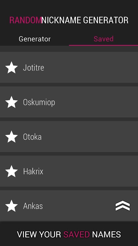 Generate and save unique names that you can use as nicknames or as names for your fantasy characters.