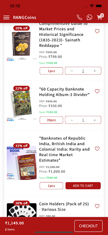 Onze app store beschikt over een uitgebreide collectie munten uit verschillende tijdperken, bankbiljetten uit Republiek India, Brits-Indië en het buitenland. Onze geweldige muntencatalogi nemen u mee op een reis door de geschiedenis, terwijl onze collectie munten en valutaaccessoires u helpt uw kostbare bezittingen te bewaren en tentoon te stellen.