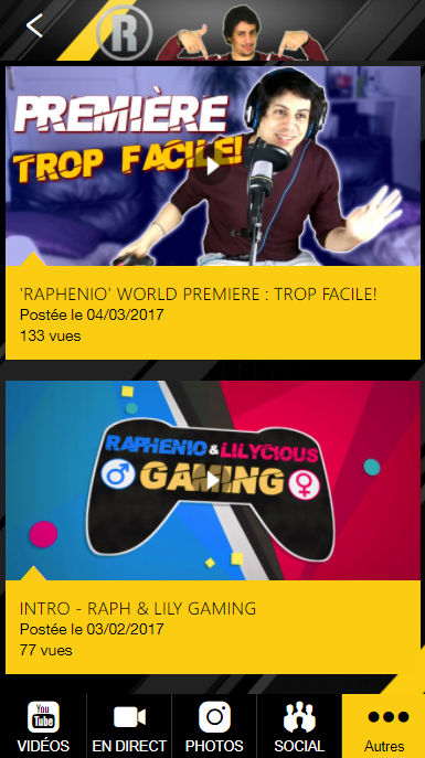 Sur l’application Raphenio, retrouvez toute mon activité gaming ainsi que mon actualité globale!