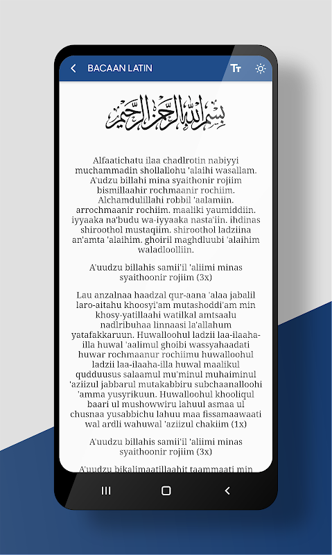 In Ratib Al-Attas kunt u de grootte van de Ratib-tekst naar wens aanpassen voor een duidelijkere leesbaarheid. Tik hiervoor op het pictogram met de drie stippen bovenaan de pagina en verschuif vervolgens de schuifbalk onderaan.