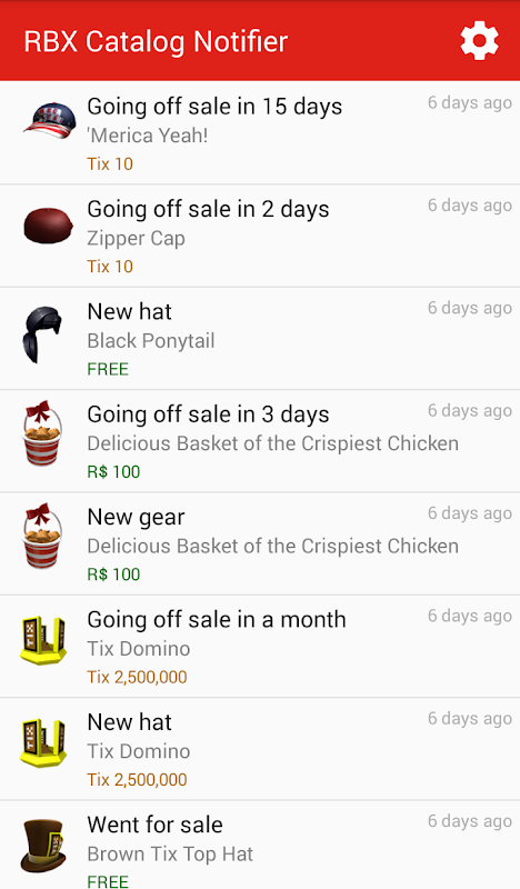 Shows notifications when virtual items are released on Roblox. The app must be opened before you will start receiving notifications.