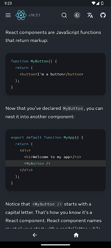 Disclaimer: dit is een niet-officiële app en is niet gelieerd aan of goedgekeurd door Facebook of het React.js-team. De app is ontwikkeld om de officiële React.js-documentatie toegankelijker te maken op mobiele apparaten.