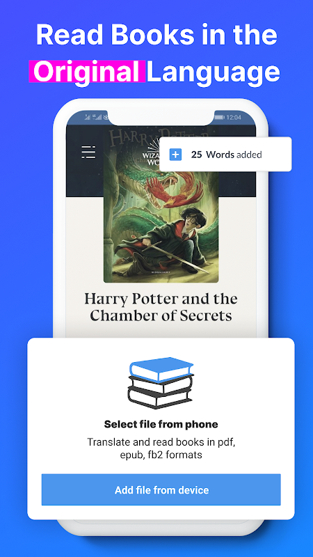 Leer nieuwe woorden door woordenschat op te bouwen. Markeer een onbegrijpelijk woord op de pagina en herken onmiddellijk de vertaling ervan. Voeg woorden toe aan uw woordenboek en voeg ze toe aan mappen. Open op elk moment het woordenboek en leer woorden die daar zijn toegevoegd. Dit is handig om nieuwe woorden te leren en uw eigen woordenschat op te bouwen.