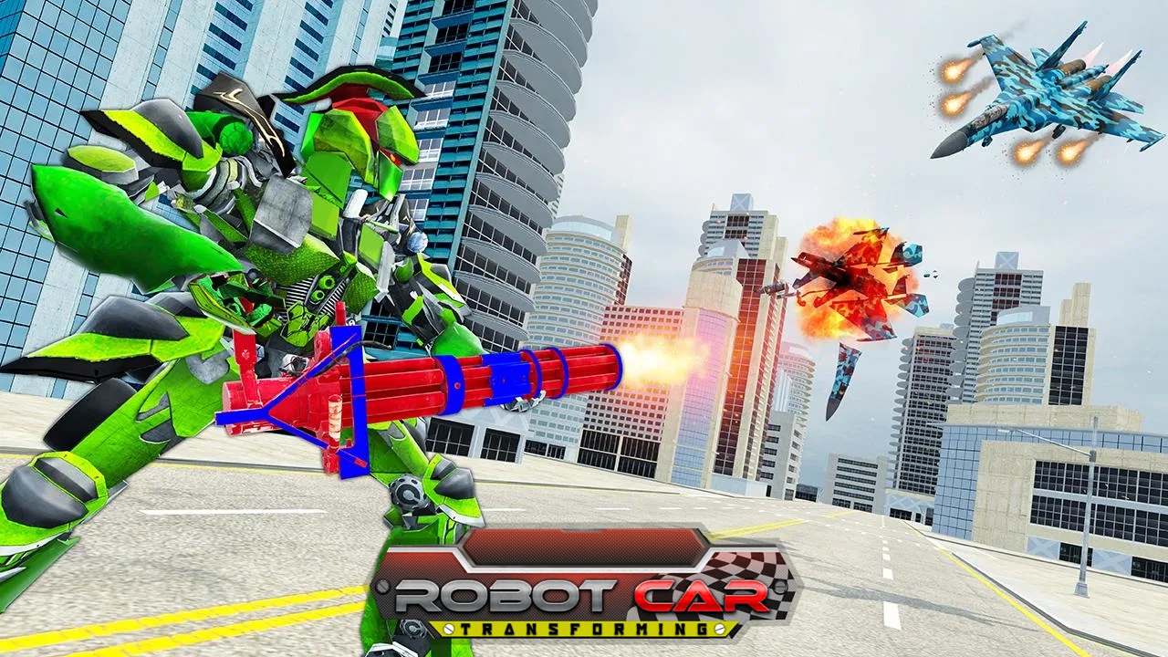 The futuristic city is invaded by flying robot cars. The futuristic robots war has just begun in survival city where this amazing robot turns into flying car will help you win the war. Take the risk of city survival rescue mission as robot hero can convert into flying car to fight in futuristic robots war in 2019 car flight simulator. Are you ready to for futuristic air fight in flying car turns into robot hero.