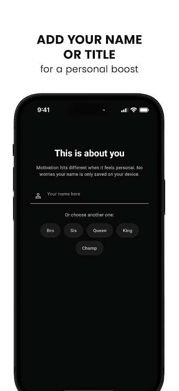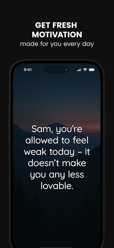 Je wilt vandaag momentum. Real Motivation geeft je precies de boost die je nodig hebt. De basisapp toont een overzichtelijke feed met nieuwe quotes, waar je naam in kan voorkomen voor extra impact. Kies je toon: Diep, Tough Love, Opbeurend of Humoristisch. Stel onderwerpen in zoals Productiviteit, Fitness, Mindset of Stressverlichting. Schakel slimme herinneringen in op de momenten die jij kiest.