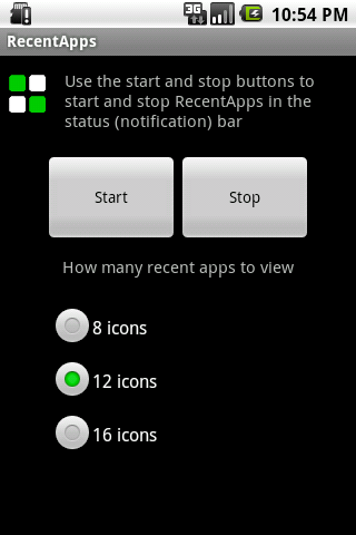 When started, RecentApps is accessed through the notification/status bar.
