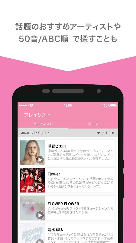 【アーティストごとに人気曲や代表曲などをチョイスしたプレイリスト】