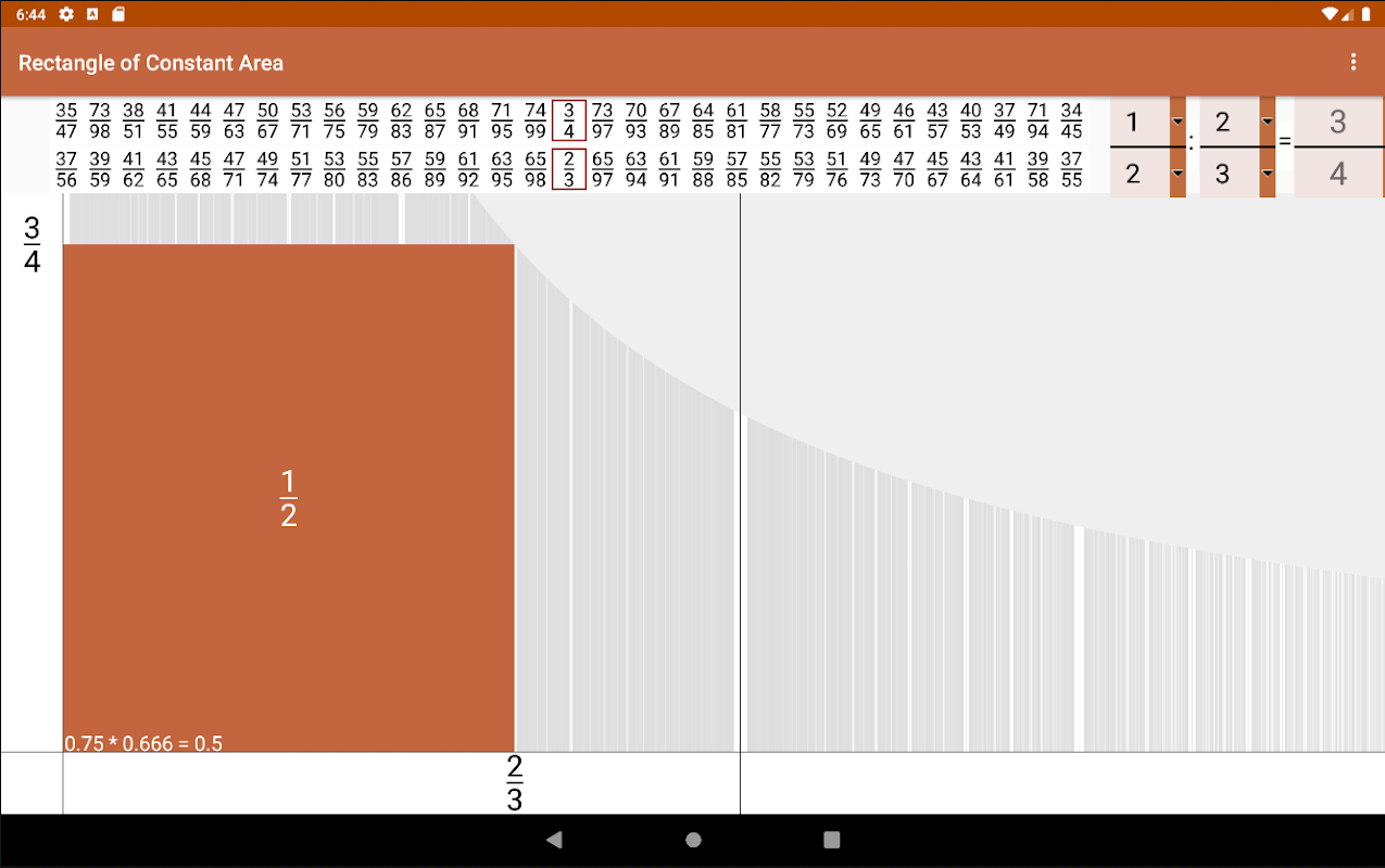 Wanneer de app start, duurt het even voordat alle fracties van de Farey-reeks 99 (0 niet inbegrepen) zijn geladen en gesorteerd, maar de app kan zonder enig ongemak worden gebruikt.