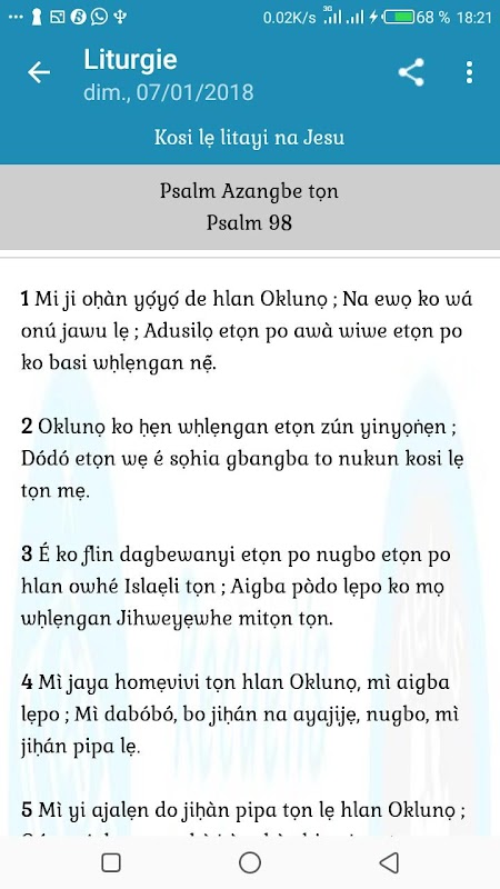 En plus de cela, vous avez les textes bibliques des cultes dominicaux en Français et en Goun, sans oublier les textes des séances d'étude biblique en Français que vous pouvez également partager entre amis et proches.