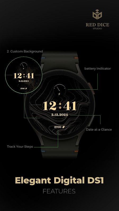Maak kennis met de Elegant Digital DS1, een slanke, veelzijdige digitale wijzerplaat die is ontworpen om een vleugje luxe aan uw smartwatch te geven. Deze wijzerplaat, gemaakt door ReddiceStudio, combineert een verfijnd gouden kleurenschema met essentiële dagelijkse functies, waaronder een digitale klok, stappenteller en datumweergave. Elegant Digital DS1 is de ideale keuze voor diegenen die een elegante maar functionele wijzerplaat waarderen die hun dagelijkse ervaring met zowel stijl als gemak verbetert.