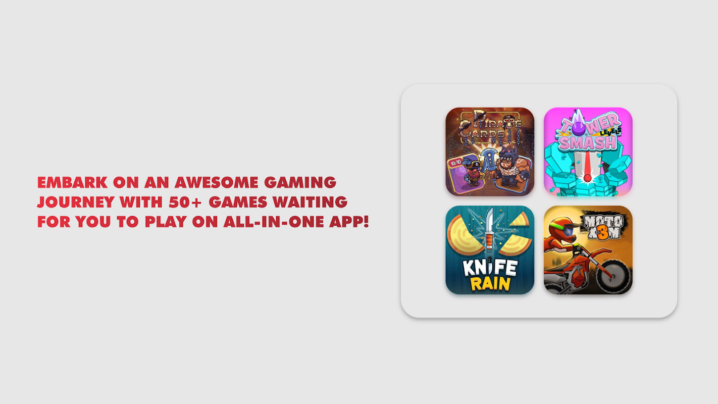 Ontdek een spannend rijk aan spelmogelijkheden die binnen handbereik liggen via onze geavanceerde, snelle app voor het verzamelen van games, ontworpen voor je Android-apparaat. Dompel jezelf onder in een uitgebreid scala aan gamegenres, van adrenaline-pompende actie tot bloedstollende race- en nostalgische arcadeklassiekers – allemaal naadloos toegankelijk in één uniforme hub, en de kers op de taart? Het is allemaal helemaal gratis! Mis je kans niet om deze ongelooflijke wereld van gaming-opwinding nu te ontgrendelen.