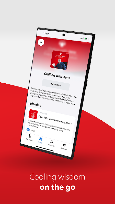 Omdat de werkdag en de weg lang kunnen zijn, biedt Ref Tools biedt u ook enige educatieve ontspanning. U kunt luisteren naar podcasts, waaronder de populaire 'Chilling with Jens' podcast, rechtstreeks in de app. Neem dus af en toe een pauze en relax even terwijl u iets nieuws leert over koeling.