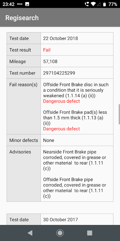 U kunt zoeken naar voertuiginformatie voor auto's, bestelwagens, fietsen, trikes, vrachtwagens, bussen, elk voertuig met een kenteken. De APK-geschiedenis wordt alleen getoond voor auto's, bestelwagens, fietsen, trikes (klassen 1,2,3,4,5,7), aangezien dit alles is dat wordt geretourneerd door de DVSA-server.