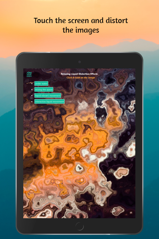 Discover the liquid distortion effects touching your screen on HD images.