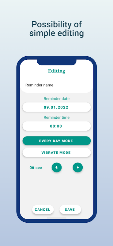 - Spraakherinnering. De opgenomen stem wordt opgeroepen en afgespeeld op het opgegeven tijdstip, zelfs als de telefoon is vergrendeld.