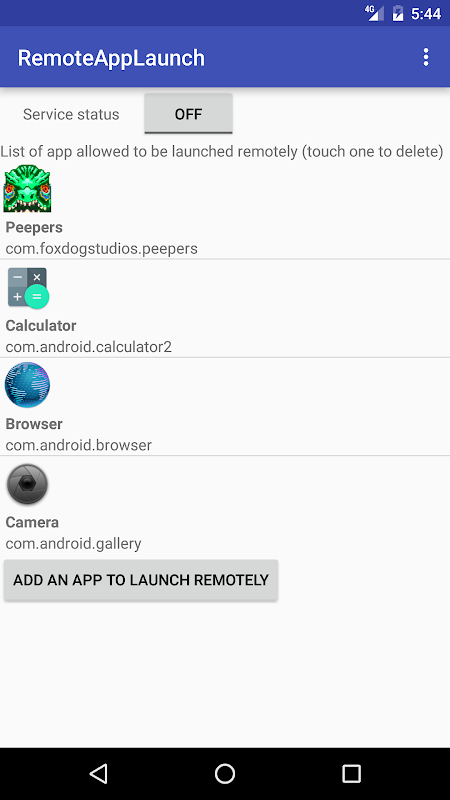 De app moet op zijn naam pakket aan te vragen (Remote App Launch zal de naam van het pakket van elke app op je telefoon te tonen, maak je geen zorgen).