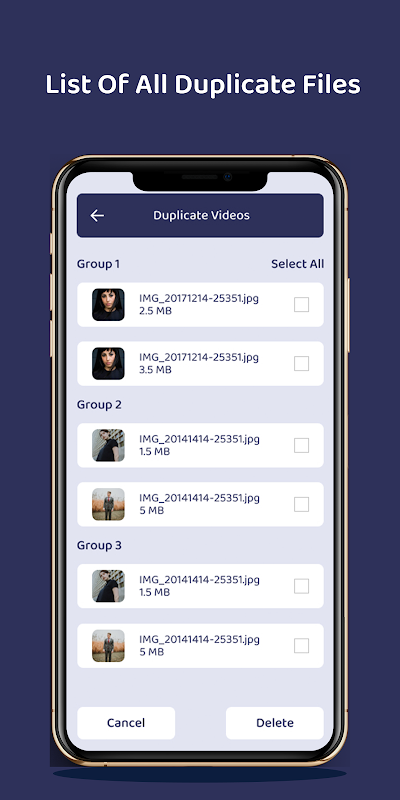 - This is special in this category as it helps to find and delete videos and images / photos with all kinds of duplicate files, audio dio files in different tabs. Duplicate File Remover or Duplicate Cleaner helps you clean your phone so you can call it Duplicate File Cleaner or Duplicate File Fixer. You can select and delete duplicate files and reclaim the phone's storage and help you speed up and run the phone by removing all duplicates of files or similar files. It will also make your phone less heat as it requires more storage and less processing.