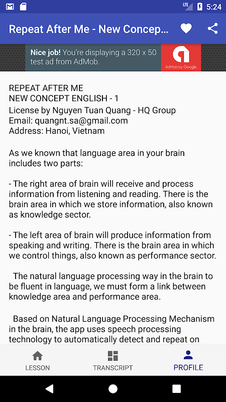Based on Natural Language Processing Mechanism in the brain, the app uses speech processing technology to automatically detect and repeat on each sentence helping the brain of listener to quickly create a connection between knowledge area and performance area.