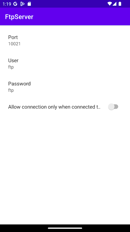 Een eenvoudige FTP-server. Het blijft zo lang mogelijk inwonend.