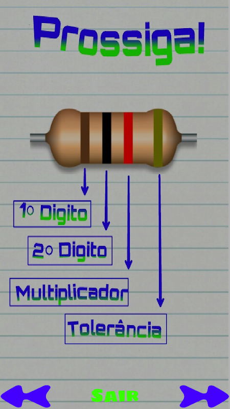 falando sobre resistores, este app contém um breve tutorial sobre o código de cores dos resistores.