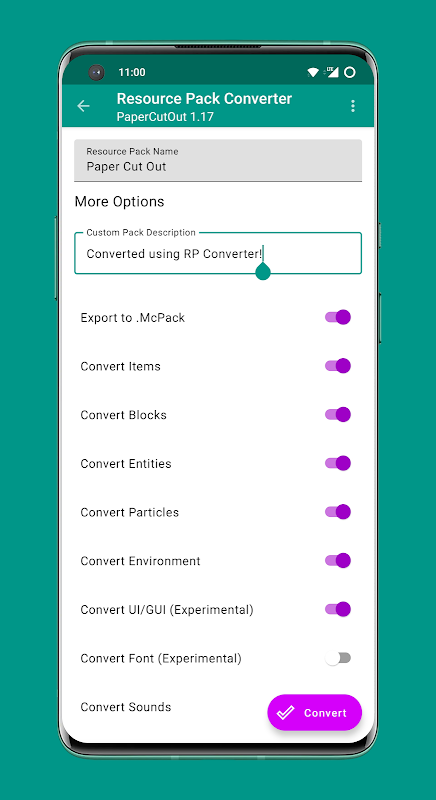 All you need to do is to pick the Zip File containing the Resource Pack, change its name or description if you wish and then just hit "Convert". The app will automatically proceed to create a playable Resource Pack for Bedrock Edition!