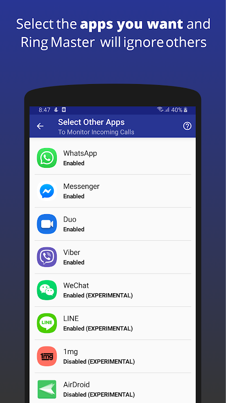 Het beste deel is dat u deze instellingen niet alleen kunt toepassen op inkomende telefoontjes , maar zelfs op oproepen in chat-apps zoals WhatsApp, Facebook Messenger, Google Duo, Viber en meer . Selecteer welke apps je wilt activeren en de volgende keer dat je een inkomend gesprek kunt krijgen, neemt de beltoon geleidelijk toe in plaats van een plotselinge volledige ontploffing.