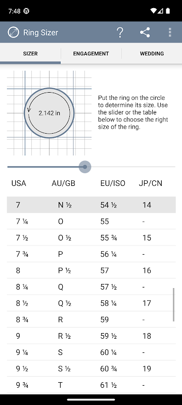 Handige tool van Jason Withers gemaakt om gemakkelijk de ring grootte in de verschillende landen. Er zijn een aantal unieke functies die worden ondersteund door de app: