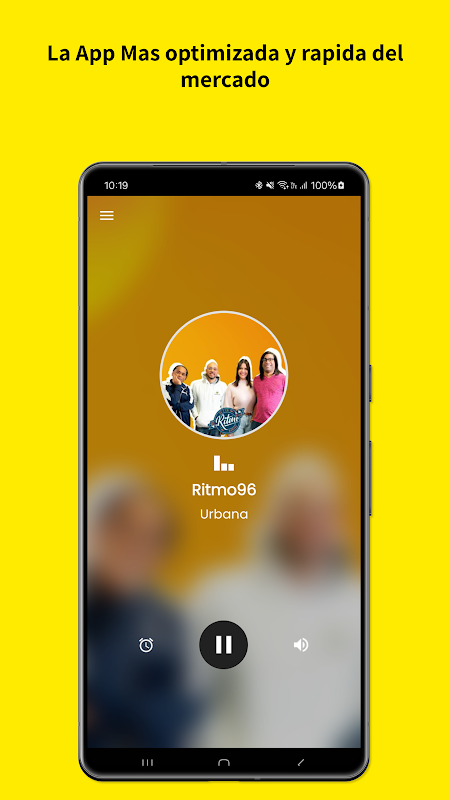 ** "Bekijk de officiële applicatie van Ritmo96, deze biedt toegang tot directe toegang tot nieuwe emissies op de lijn. Met de Ritmo96-app kan het programma in het leven worden weergegeven en uw favoriete muziek en programma's worden verwijderd.