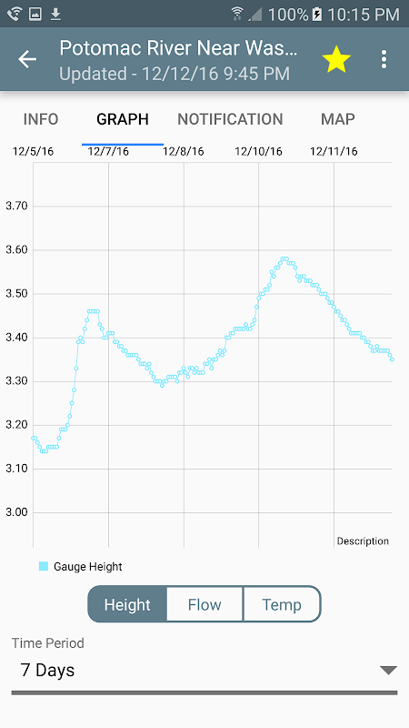 Snelle toegang tot USGS rivier niveau meters. Levert waardevolle informatie om te kajakken, vissen, of enige andere activiteit op een rivier of beek. Kenmerken omvatten: