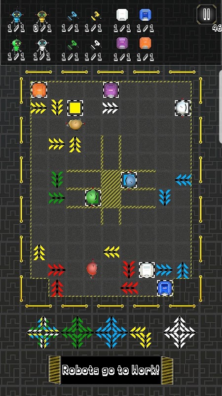Eenvoudige en verslavende gameplay, leid de robots door het spelveld door richtingspijlen naar het spelveld te slepen en neer te zetten om de puzzels op te lossen.